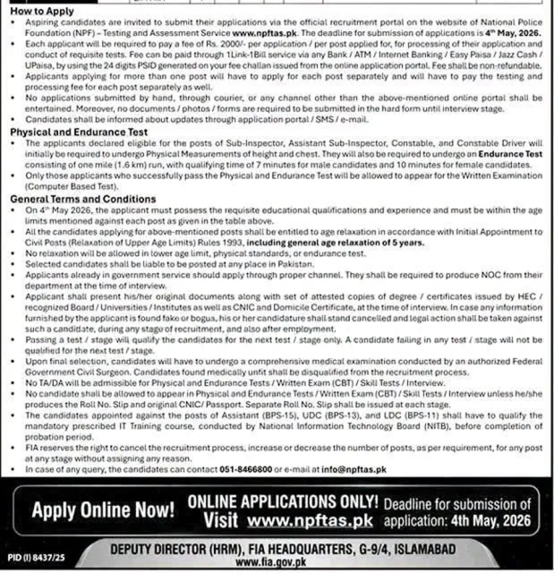 FIA Jobs 2026: Federal Investigation Agency New Vacancies Announced – Apply Online