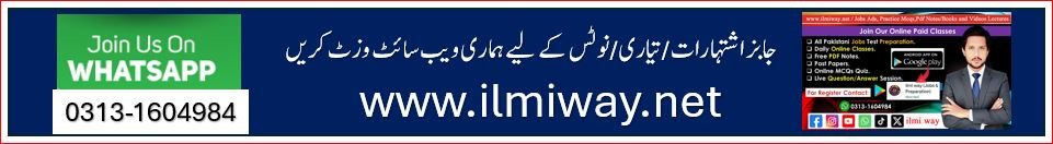 Clerk: Intermediate (FA/FSc) with at least a ‘B’ Grade. Candidates with Computer knowledge are preferred.